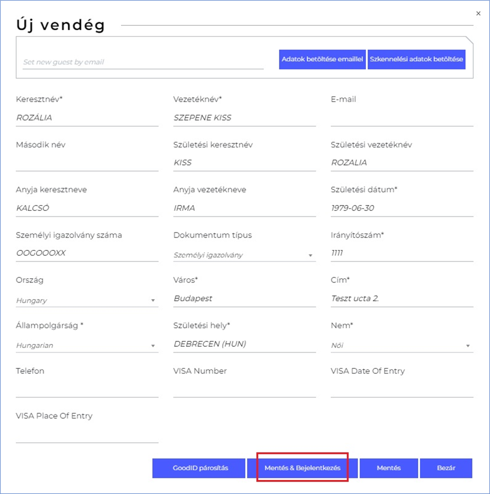 A távoli okmányolvasással bekért adatok TMRW-be történő továbbításával (bővebben a GoodID felhasználói kézikönyv ír) a venédgek adatlapját szintén az alábbi módon tudja a pms felhasználó kitölteni és ezzel a VIZA rendszerébe elküldeni.