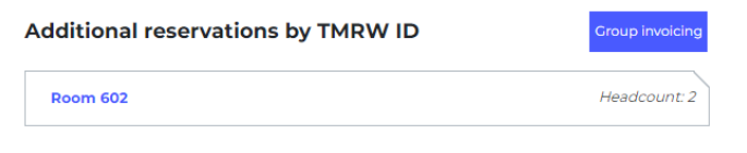 By pressing this button you will be taken to the Group invoicing page, which can also be accessed from the Invoicing menu, where the reservations (rooms) you wish to count under a TMRW ID will be listed.