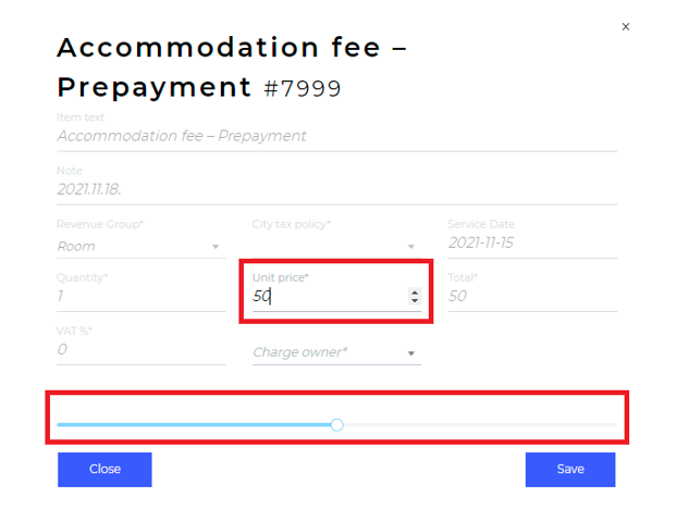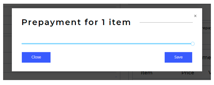 2. By clicking on ’Add prepayment’ you can choose which items you would like to add prepayment item. With this option you can add prepayment item to more than one items by using the slider.
