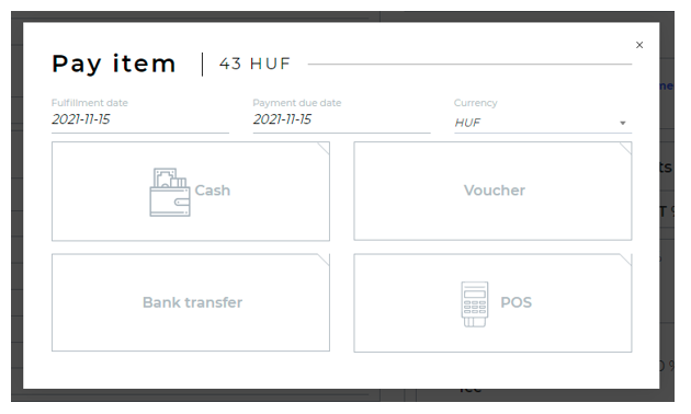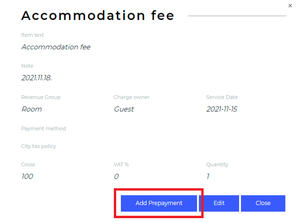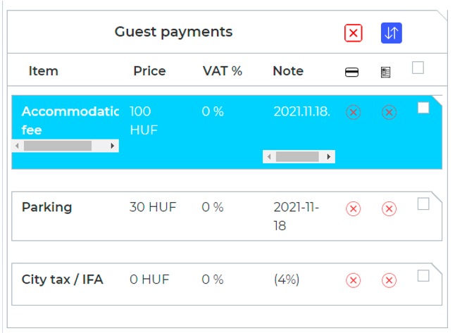 If the rest of the amounts have been paid, you have to set all items to ’Paid’ and the system will generate the final invoice automatically. On this invoice the prepayments will be seen with negative sign. If the guest has paid everything earlier, you have to set 0 amount items to ’Paid’ also. The final invoice will be with 0 total amount.