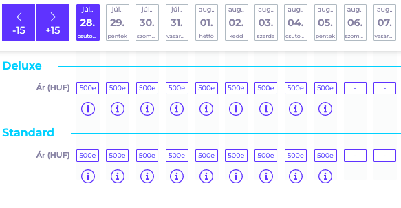A foglaláshoz kötelezően ki kell választani egy Árkódot, amivel meghatározza a szoba/lakóegység típusát és maximális befogadó képességét.