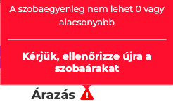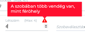 A létszám megadásánál a rendszer kiírja hány fő fér el az adott szobában. Amennyiben a szoba befogadóképességénél több vendég kerül megadásra, a rendszer felhívja a felhasználó figyelmét:
