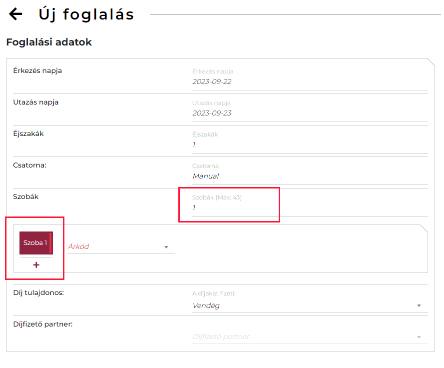 A plusz jellel vagy a szobák mennyiségének növelésével további szobák adhatóak a foglaláshoz: