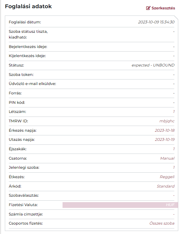 A rendszerben továbbra is a szálloda által preferált pénzemben látjuk a fizetési tételeket.