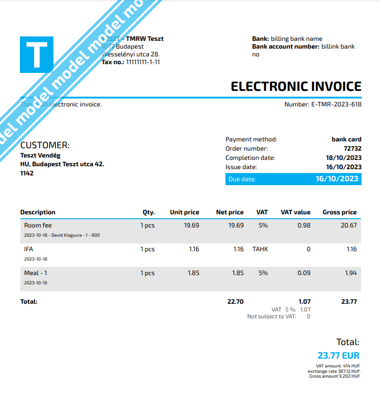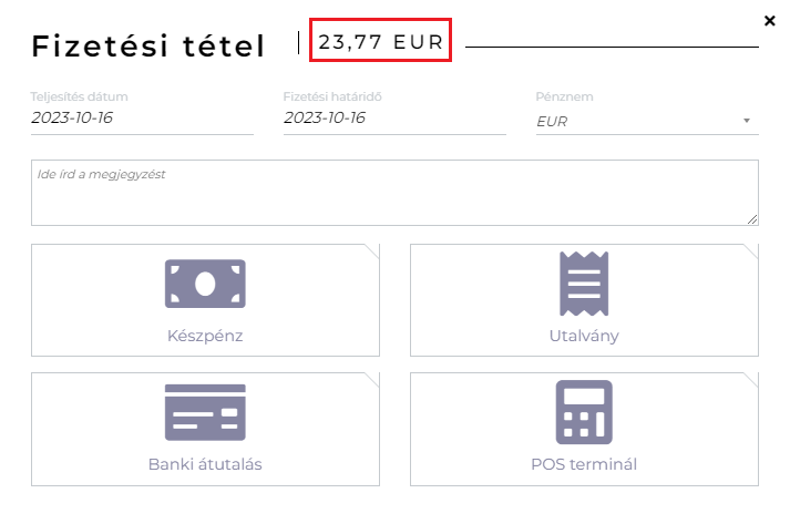 Azonban az ügyfél számára a Fizetési linken (Payment link) és a számlán is az általa kért pénznemben a beállításokban megadott árfolyamon átváltva fog megjelenni a fizetendő összeg.