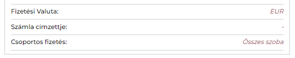 Minden szálláshelyre be van állítva, hogy mi az elszámolási pénzneme. Ezen felül minden foglaláson átállíthatjuk, hogy a foglalás teljes értéke más pénznemben legyen fizettetve.