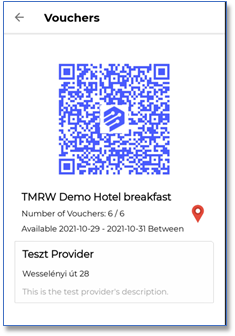 Ezután egy QR kód fog megjelenni a kijelzőjén amit fel kell mutatnia a szolgáltatást nyújtó cég kijelölt emberének (aki regisztrálva lett provider jogosultsággal).