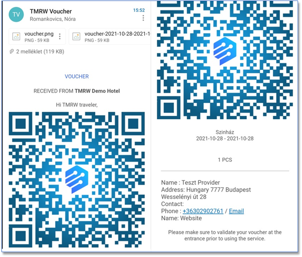 A beállított voucher megjelenik a foglaláson a pms-ben, valamint a vendég applikációjában is egy külön csempeként!