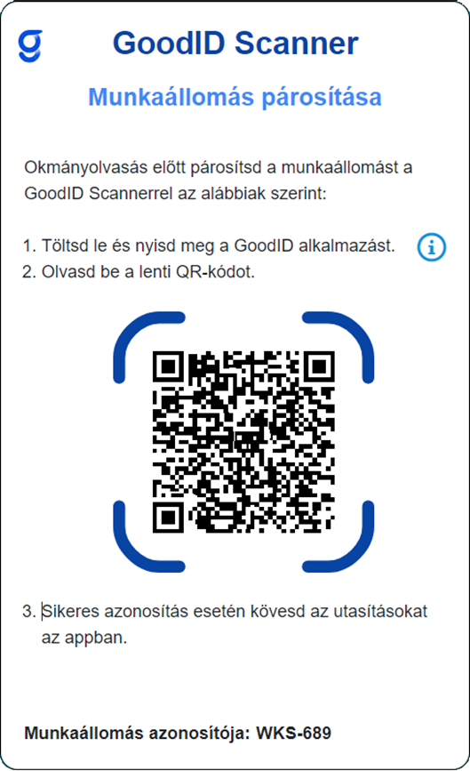 A PMS-párosítási képernyőn megjelenő QR-kódot olvassa be a GoodID mobilalkalmazás QR-kód-olvasójával.