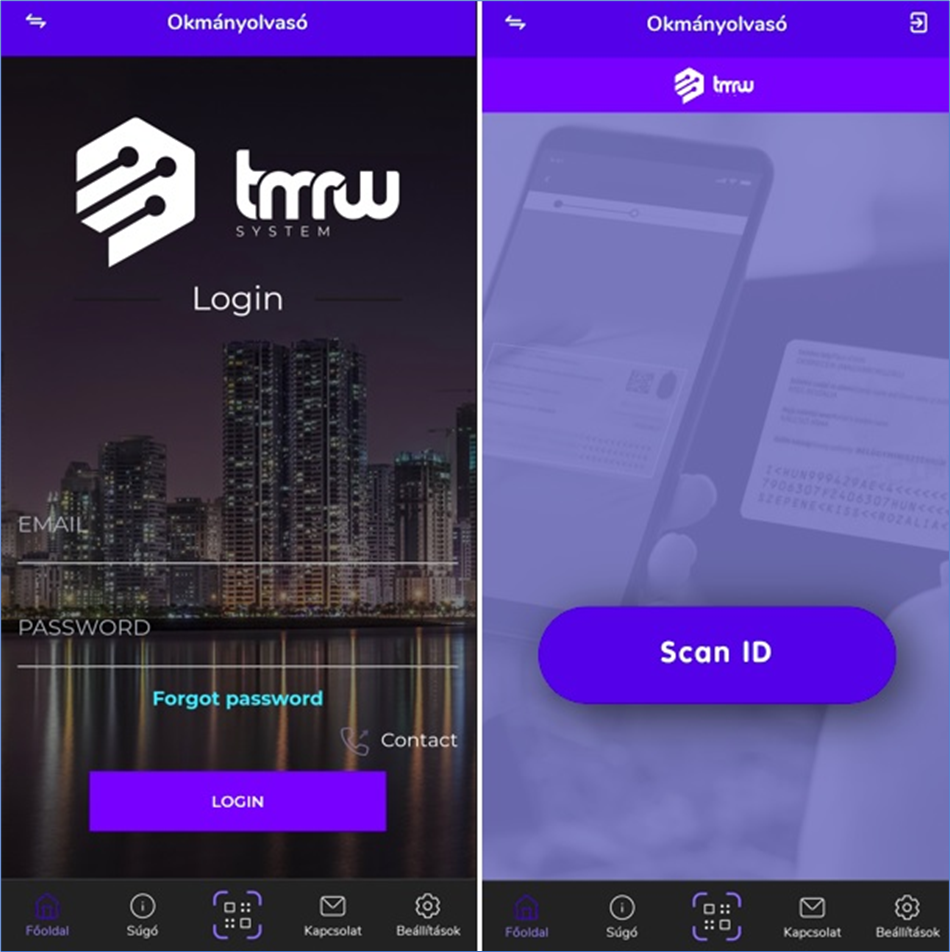 A párosításhoz szükséges QR kód beolvasása után a TMRW belépési felületére kerül a felhasználó. Nincs más dolga, mint belépni a TMRW-s felhasználói adataival és már kezdődhet is az okmányolvasás.